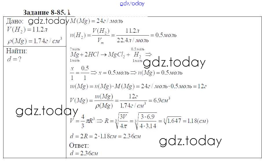 На страницах сайта gdz.today вы найдете учебный и вспомогательный материал, направленный на улучшения знаний школьной программы. ГДЗ - онлайн мир знаний Решение к главе №8. Металлы 8-85 Задачнику по Химии для 9 класса Кузнецова, Левкин Вентана-граф Алгоритм успеха 2015