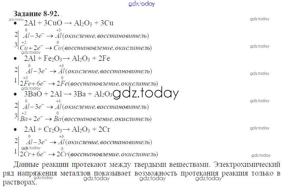 На страницах сайта gdz.today вы найдете учебный и вспомогательный материал, направленный на улучшения знаний школьной программы. ГДЗ - онлайн мир знаний Решение к главе №8. Металлы 8-92 Задачнику по Химии для 9 класса Кузнецова, Левкин Вентана-граф Алгоритм успеха 2015