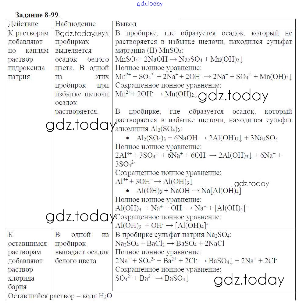 Ответы к Решение к главе №8. Металлы 8-99 Задачнику по Химии для 9 класса Кузнецова, Левкин Вентана-граф Алгоритм успеха 2015