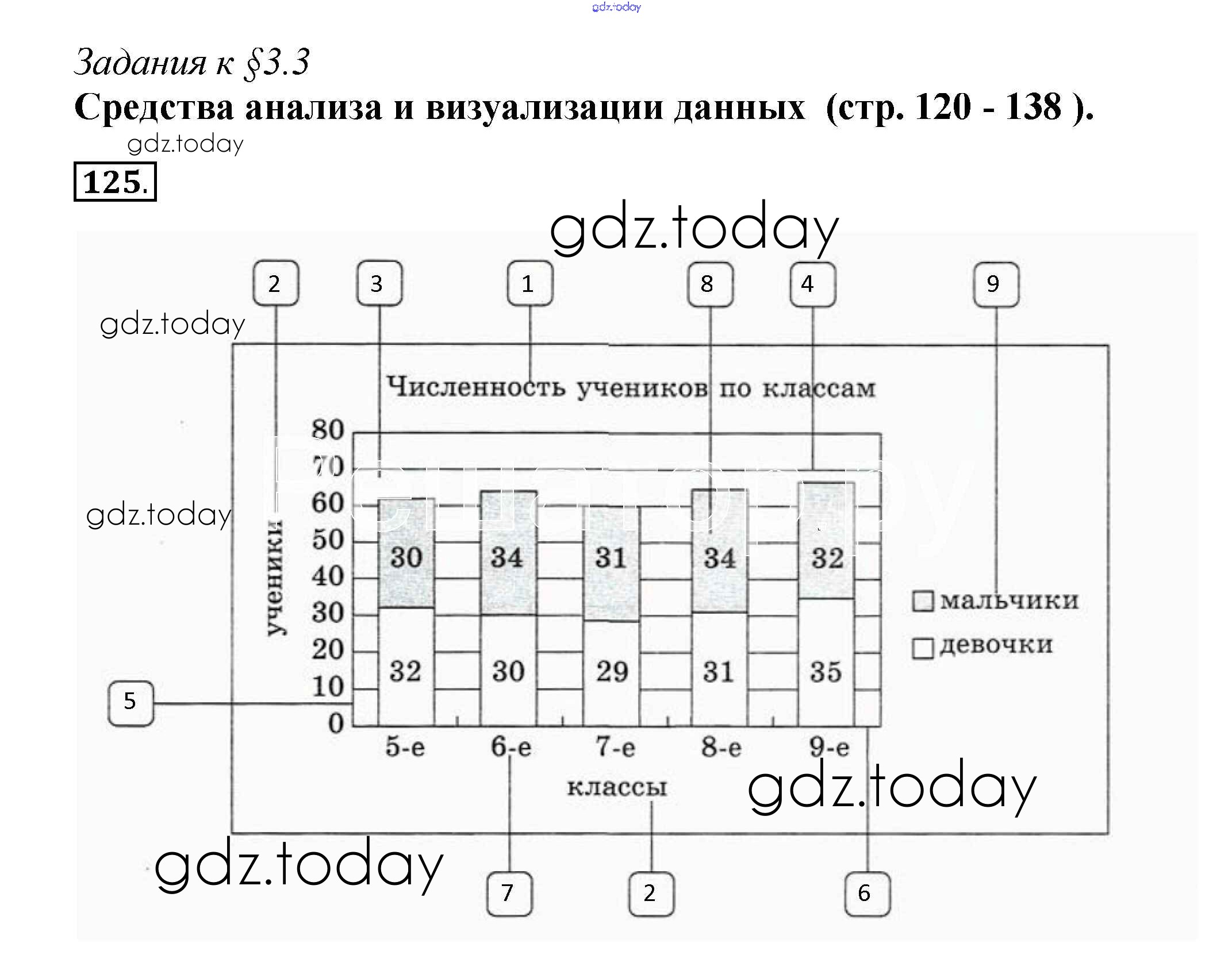 На страницах сайта gdz.today вы найдете учебный и вспомогательный материал, направленный на улучшения знаний школьной программы. ГДЗ - онлайн мир знаний Решение к заданиям 125 Рабочей тетради по Информатике для 9 класса Босова Базовый и углубленный уровень Бином 2017