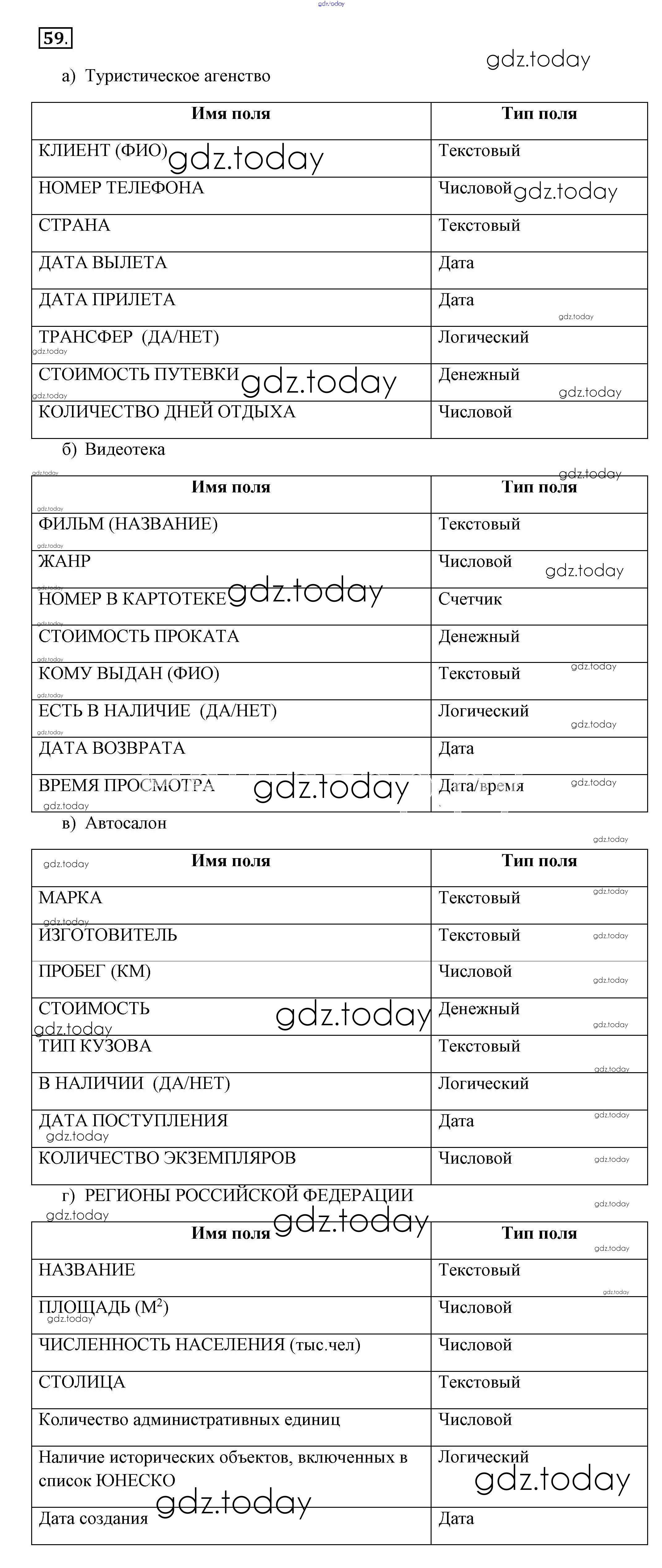 Ответы к Решение к заданиям 59 Рабочей тетради по Информатике для 9 класса Босова Базовый и углубленный уровень Бином 2017