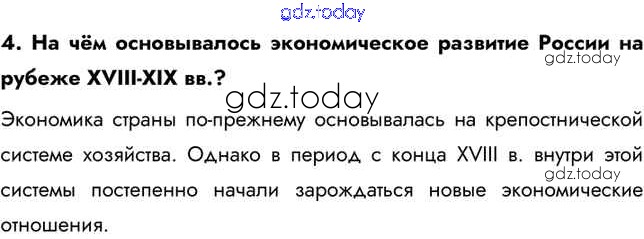 На страницах сайта gdz.today вы найдете учебный и вспомогательный материал, направленный на улучшения знаний школьной программы. ГДЗ - онлайн мир знаний Вопросы и задания §1. Россия в мир на рубеже XVIII-XIX вв. 4 Учебнику по Истории России для 9 класса Арсентьев, Данилов  Просвещение  2016