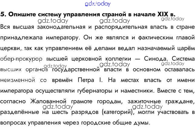 На страницах сайта gdz.today вы найдете учебный и вспомогательный материал, направленный на улучшения знаний школьной программы. ГДЗ - онлайн мир знаний Вопросы и задания §1. Россия в мир на рубеже XVIII-XIX вв. 5 Учебнику по Истории России для 9 класса Арсентьев, Данилов  Просвещение  2016