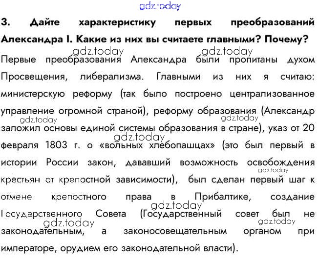 На страницах сайта gdz.today вы найдете учебный и вспомогательный материал, направленный на улучшения знаний школьной программы. ГДЗ - онлайн мир знаний Вопросы и задания §2. Александр I: начало правления. Реформы М. М. Сперанского 3 Учебнику по Истории России для 9 класса Арсентьев, Данилов  Просвещение  2016