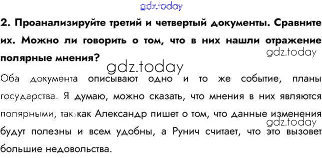 На страницах сайта gdz.today вы найдете учебный и вспомогательный материал, направленный на улучшения знаний школьной программы. ГДЗ - онлайн мир знаний Изучаем документ §2. Александр I: начало правления. Реформы М. М. Сперанского Стр.21 Учебнику по Истории России для 9 класса Арсентьев, Данилов  Просвещение  2016
