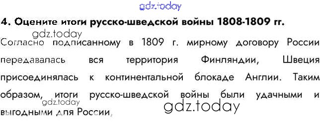 На страницах сайта gdz.today вы найдете учебный и вспомогательный материал, направленный на улучшения знаний школьной программы. ГДЗ - онлайн мир знаний Вопросы и задания §3. Внешняя политика Александра I в 1801-1812 гг. 4 Учебнику по Истории России для 9 класса Арсентьев, Данилов  Просвещение  2016