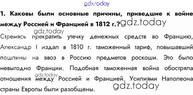На страницах сайта gdz.today вы найдете учебный и вспомогательный материал, направленный на улучшения знаний школьной программы. ГДЗ - онлайн мир знаний Вопросы и задания §4. Отечественная война 1812 г. 1 Учебнику по Истории России для 9 класса Арсентьев, Данилов  Просвещение  2016