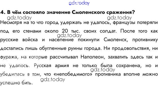 На страницах сайта gdz.today вы найдете учебный и вспомогательный материал, направленный на улучшения знаний школьной программы. ГДЗ - онлайн мир знаний Вопросы и задания §4. Отечественная война 1812 г. 4 Учебнику по Истории России для 9 класса Арсентьев, Данилов  Просвещение  2016