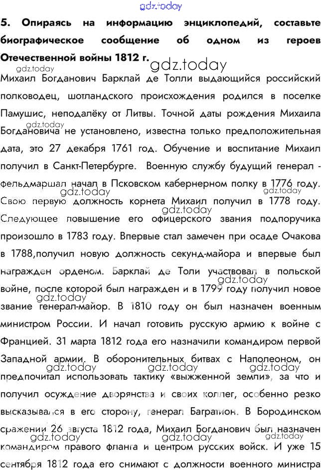 На страницах сайта gdz.today вы найдете учебный и вспомогательный материал, направленный на улучшения знаний школьной программы. ГДЗ - онлайн мир знаний Думаем, сравниваем, размышляем §4. Отечественная война 1812 г. 5 Учебнику по Истории России для 9 класса Арсентьев, Данилов  Просвещение  2016