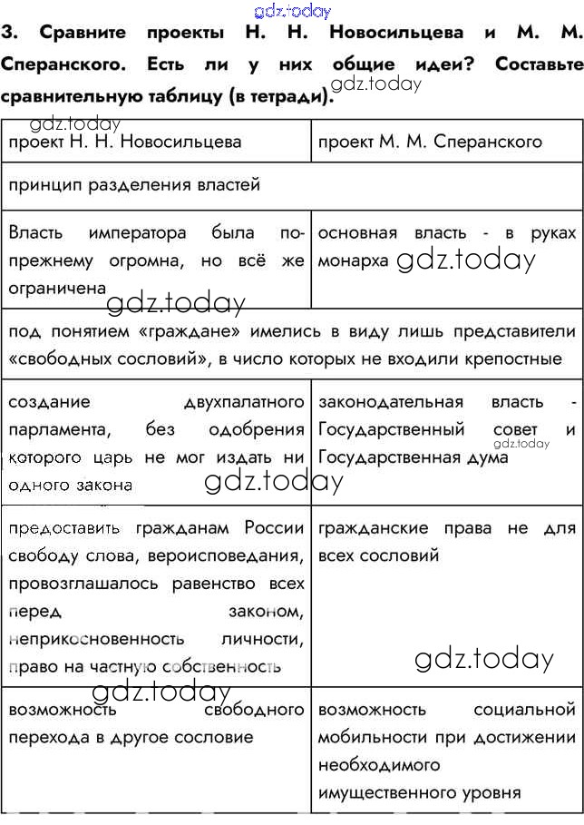 На страницах сайта gdz.today вы найдете учебный и вспомогательный материал, направленный на улучшения знаний школьной программы. ГДЗ - онлайн мир знаний Думаем, сравниваем, размышляем §6. Либеральные и охранительные тенденции во внутренней политике Александра I в 1815-1825 гг. 3 Учебнику по Истории России для 9 класса Арсентьев, Данилов  Просвещение  2016