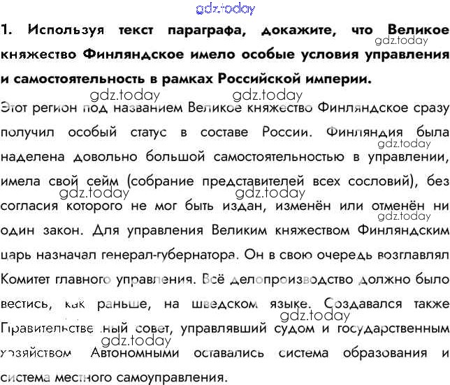 На страницах сайта gdz.today вы найдете учебный и вспомогательный материал, направленный на улучшения знаний школьной программы. ГДЗ - онлайн мир знаний Вопросы и задания Национальная политика Александра I 1 Учебнику по Истории России для 9 класса Арсентьев, Данилов  Просвещение  2016