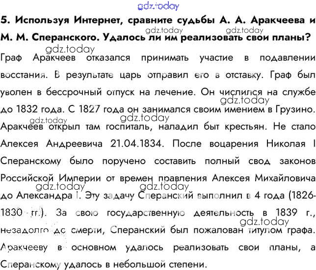 На страницах сайта gdz.today вы найдете учебный и вспомогательный материал, направленный на улучшения знаний школьной программы. ГДЗ - онлайн мир знаний Думаем, сравниваем, размышляем §7. Социально-экономическое развитие страны в первой четверти XIX в. 5 Учебнику по Истории России для 9 класса Арсентьев, Данилов  Просвещение  2016