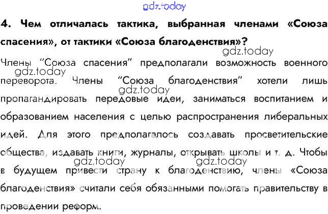 На страницах сайта gdz.today вы найдете учебный и вспомогательный материал, направленный на улучшения знаний школьной программы. ГДЗ - онлайн мир знаний Вопросы и задания §8-9. Общественное движение при Александре I. Выступление декабристов 4 Учебнику по Истории России для 9 класса Арсентьев, Данилов  Просвещение  2016