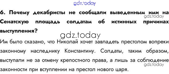 На страницах сайта gdz.today вы найдете учебный и вспомогательный материал, направленный на улучшения знаний школьной программы. ГДЗ - онлайн мир знаний Вопросы и задания §8-9. Общественное движение при Александре I. Выступление декабристов 6 Учебнику по Истории России для 9 класса Арсентьев, Данилов  Просвещение  2016