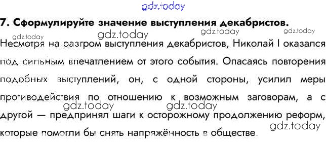 На страницах сайта gdz.today вы найдете учебный и вспомогательный материал, направленный на улучшения знаний школьной программы. ГДЗ - онлайн мир знаний Вопросы и задания §8-9. Общественное движение при Александре I. Выступление декабристов 7 Учебнику по Истории России для 9 класса Арсентьев, Данилов  Просвещение  2016