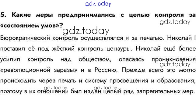 На страницах сайта gdz.today вы найдете учебный и вспомогательный материал, направленный на улучшения знаний школьной программы. ГДЗ - онлайн мир знаний Вопросы и задания §10. Реформаторские и консервативные тенденции во внутренней политике Николая I 5 Учебнику по Истории России для 9 класса Арсентьев, Данилов  Просвещение  2016