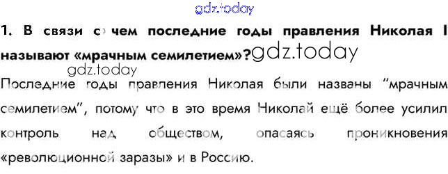 На страницах сайта gdz.today вы найдете учебный и вспомогательный материал, направленный на улучшения знаний школьной программы. ГДЗ - онлайн мир знаний Думаем, сравниваем, размышляем §10. Реформаторские и консервативные тенденции во внутренней политике Николая I 1 Учебнику по Истории России для 9 класса Арсентьев, Данилов  Просвещение  2016