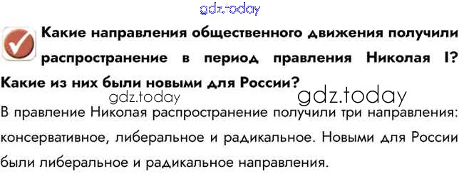 На страницах сайта gdz.today вы найдете учебный и вспомогательный материал, направленный на улучшения знаний школьной программы. ГДЗ - онлайн мир знаний Вопрос в начале параграфа §12. Общественное движение при Николае I 1 Учебнику по Истории России для 9 класса Арсентьев, Данилов  Просвещение  2016
