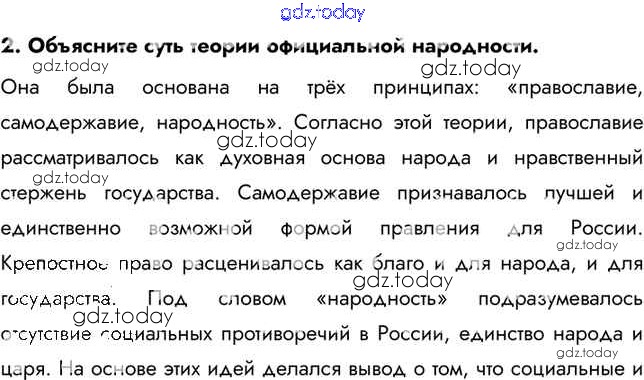 На страницах сайта gdz.today вы найдете учебный и вспомогательный материал, направленный на улучшения знаний школьной программы. ГДЗ - онлайн мир знаний Вопросы и задания §12. Общественное движение при Николае I 2 Учебнику по Истории России для 9 класса Арсентьев, Данилов  Просвещение  2016