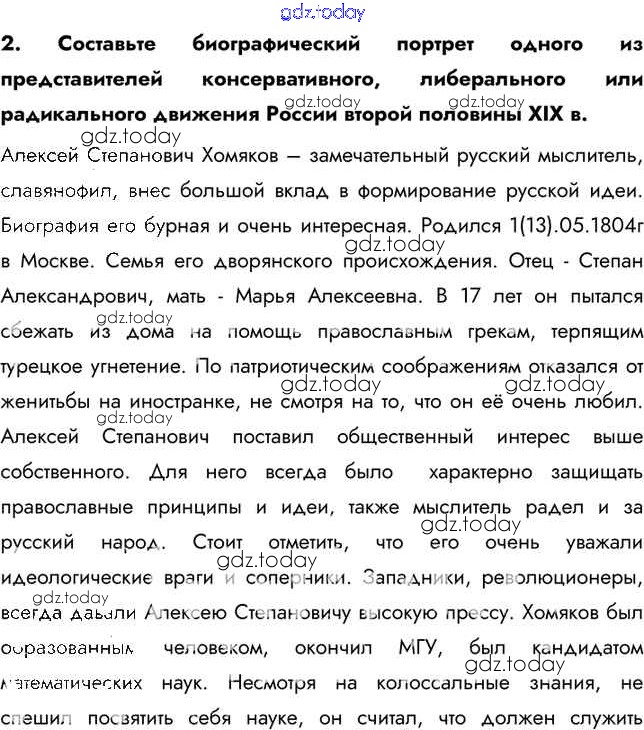 На страницах сайта gdz.today вы найдете учебный и вспомогательный материал, направленный на улучшения знаний школьной программы. ГДЗ - онлайн мир знаний Думаем, сравниваем, размышляем §12. Общественное движение при Николае I 2 Учебнику по Истории России для 9 класса Арсентьев, Данилов  Просвещение  2016
