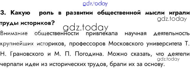 На страницах сайта gdz.today вы найдете учебный и вспомогательный материал, направленный на улучшения знаний школьной программы. ГДЗ - онлайн мир знаний Вопросы и задания Культурное пространство империи в первой половине XIX в 3 Учебнику по Истории России для 9 класса Арсентьев, Данилов Просвещение 2016