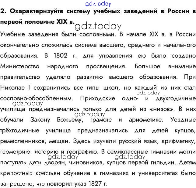 На страницах сайта gdz.today вы найдете учебный и вспомогательный материал, направленный на улучшения знаний школьной программы. ГДЗ - онлайн мир знаний Думаем, сравниваем, размышляем Культурное пространство империи в первой половине XIX в 2 Учебнику по Истории России для 9 класса Арсентьев, Данилов  Просвещение  2016