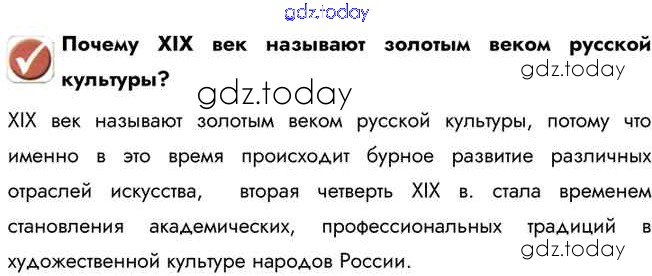 На страницах сайта gdz.today вы найдете учебный и вспомогательный материал, направленный на улучшения знаний школьной программы. ГДЗ - онлайн мир знаний Вопрос в начале параграфа Культурное пространство империи в первой половине XIX в 1 Учебнику по Истории России для 9 класса Арсентьев, Данилов  Просвещение  2016
