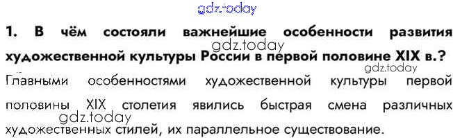 На страницах сайта gdz.today вы найдете учебный и вспомогательный материал, направленный на улучшения знаний школьной программы. ГДЗ - онлайн мир знаний Вопросы и задания Культурное пространство империи в первой половине XIX в 1 Учебнику по Истории России для 9 класса Арсентьев, Данилов  Просвещение  2016