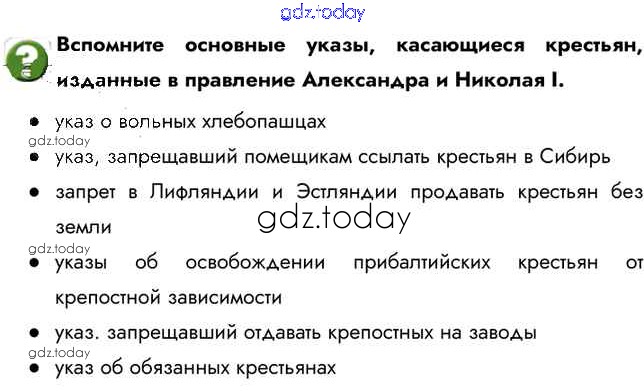 На страницах сайта gdz.today вы найдете учебный и вспомогательный материал, направленный на улучшения знаний школьной программы. ГДЗ - онлайн мир знаний Вопросы § 15. Европейская индустриализация и предпосылки реформ в России Стр.115 Учебнику по Истории России для 9 класса Арсентьев, Данилов  Просвещение  2016