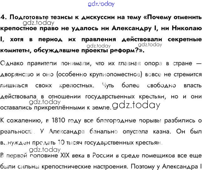 На страницах сайта gdz.today вы найдете учебный и вспомогательный материал, направленный на улучшения знаний школьной программы. ГДЗ - онлайн мир знаний Думаем, сравниваем, размышляем § 15. Европейская индустриализация и предпосылки реформ в России 4 Учебнику по Истории России для 9 класса Арсентьев, Данилов  Просвещение  2016
