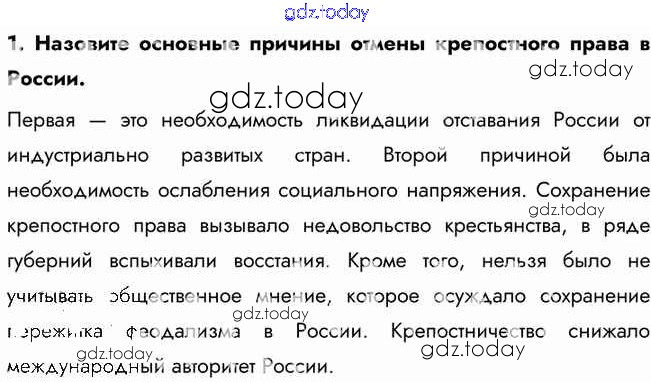 На страницах сайта gdz.today вы найдете учебный и вспомогательный материал, направленный на улучшения знаний школьной программы. ГДЗ - онлайн мир знаний Вопросы и задания § 16. Александр II: начало правления. Крестьянская реформа 1861 г. 1 Учебнику по Истории России для 9 класса Арсентьев, Данилов  Просвещение  2016