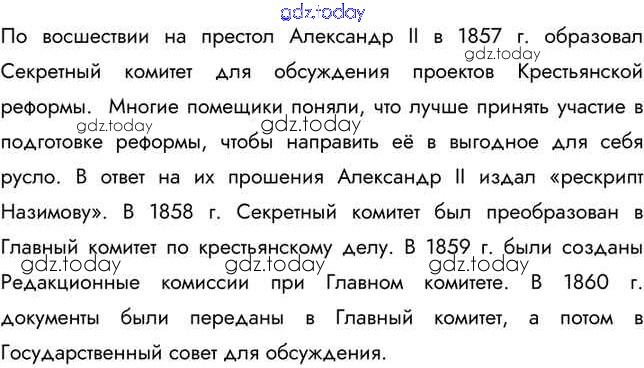 На страницах сайта gdz.today вы найдете учебный и вспомогательный материал, направленный на улучшения знаний школьной программы. ГДЗ - онлайн мир знаний Вопросы и задания § 16. Александр II: начало правления. Крестьянская реформа 1861 г. 2 Учебнику по Истории России для 9 класса Арсентьев, Данилов  Просвещение  2016