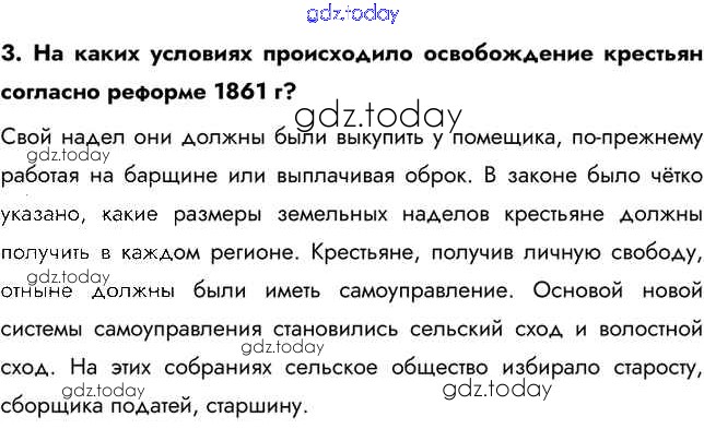 На страницах сайта gdz.today вы найдете учебный и вспомогательный материал, направленный на улучшения знаний школьной программы. ГДЗ - онлайн мир знаний Вопросы и задания § 16. Александр II: начало правления. Крестьянская реформа 1861 г. 3 Учебнику по Истории России для 9 класса Арсентьев, Данилов  Просвещение  2016