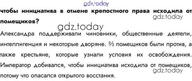 На страницах сайта gdz.today вы найдете учебный и вспомогательный материал, направленный на улучшения знаний школьной программы. ГДЗ - онлайн мир знаний Думаем, сравниваем, размышляем § 16. Александр II: начало правления. Крестьянская реформа 1861 г. 1 Учебнику по Истории России для 9 класса Арсентьев, Данилов  Просвещение  2016
