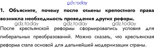 На страницах сайта gdz.today вы найдете учебный и вспомогательный материал, направленный на улучшения знаний школьной программы. ГДЗ - онлайн мир знаний Думаем, сравниваем, размышляем § 17. Реформы 1860-1870-х гг.: социальная и правовая модернизация 1 Учебнику по Истории России для 9 класса Арсентьев, Данилов  Просвещение  2016