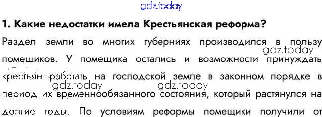 На страницах сайта gdz.today вы найдете учебный и вспомогательный материал, направленный на улучшения знаний школьной программы. ГДЗ - онлайн мир знаний Вопросы и задания § 18. Социально-экономическое развитие страны в пореформенный период 1 Учебнику по Истории России для 9 класса Арсентьев, Данилов  Просвещение  2016