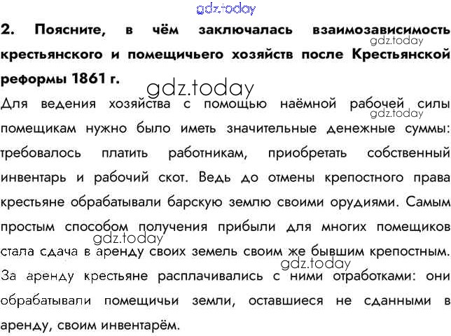 На страницах сайта gdz.today вы найдете учебный и вспомогательный материал, направленный на улучшения знаний школьной программы. ГДЗ - онлайн мир знаний Вопросы и задания § 18. Социально-экономическое развитие страны в пореформенный период 2 Учебнику по Истории России для 9 класса Арсентьев, Данилов  Просвещение  2016