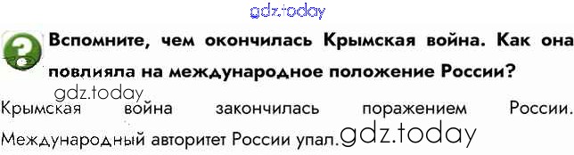 На страницах сайта gdz.today вы найдете учебный и вспомогательный материал, направленный на улучшения знаний школьной программы. ГДЗ - онлайн мир знаний Вопросы § 21. Внешняя политика Александра II. Стр.152 Учебнику по Истории России для 9 класса Арсентьев, Данилов  Просвещение  2016