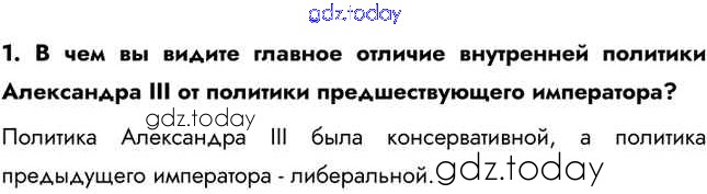На страницах сайта gdz.today вы найдете учебный и вспомогательный материал, направленный на улучшения знаний школьной программы. ГДЗ - онлайн мир знаний Думаем, сравниваем, размышляем § 22. Александр III: особенности внутренней политики 1 Учебнику по Истории России для 9 класса Арсентьев, Данилов  Просвещение  2016