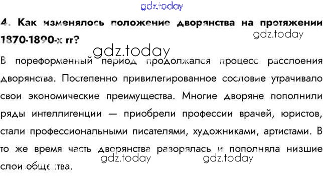На страницах сайта gdz.today вы найдете учебный и вспомогательный материал, направленный на улучшения знаний школьной программы. ГДЗ - онлайн мир знаний Вопросы и задания § 23. Перемены в экономике и социальном строе 4 Учебнику по Истории России для 9 класса Арсентьев, Данилов  Просвещение  2016