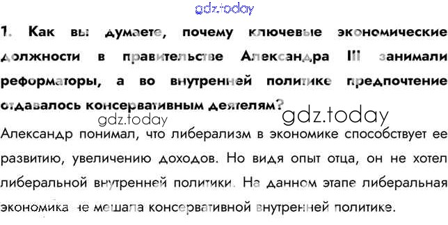 На страницах сайта gdz.today вы найдете учебный и вспомогательный материал, направленный на улучшения знаний школьной программы. ГДЗ - онлайн мир знаний Думаем, сравниваем, размышляем § 23. Перемены в экономике и социальном строе 1 Учебнику по Истории России для 9 класса Арсентьев, Данилов  Просвещение  2016