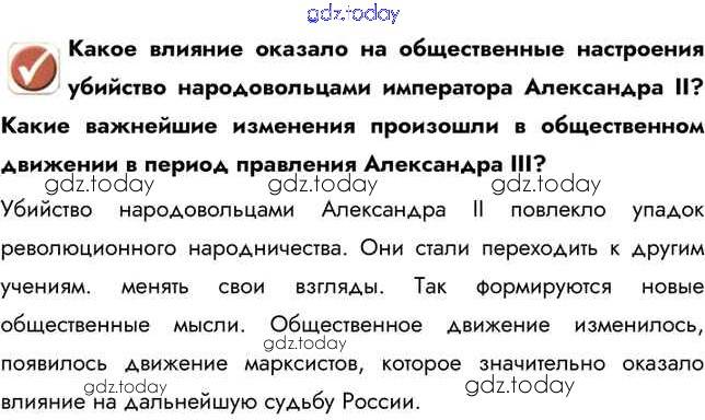На страницах сайта gdz.today вы найдете учебный и вспомогательный материал, направленный на улучшения знаний школьной программы. ГДЗ - онлайн мир знаний Вопрос в начале параграфа § 24. Общественное движение в 1880-х - первой половине 1890-х гг. 1 Учебнику по Истории России для 9 класса Арсентьев, Данилов  Просвещение  2016