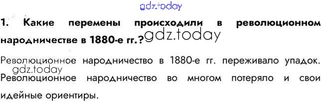 На страницах сайта gdz.today вы найдете учебный и вспомогательный материал, направленный на улучшения знаний школьной программы. ГДЗ - онлайн мир знаний Вопросы и задания § 24. Общественное движение в 1880-х - первой половине 1890-х гг. 1 Учебнику по Истории России для 9 класса Арсентьев, Данилов  Просвещение  2016