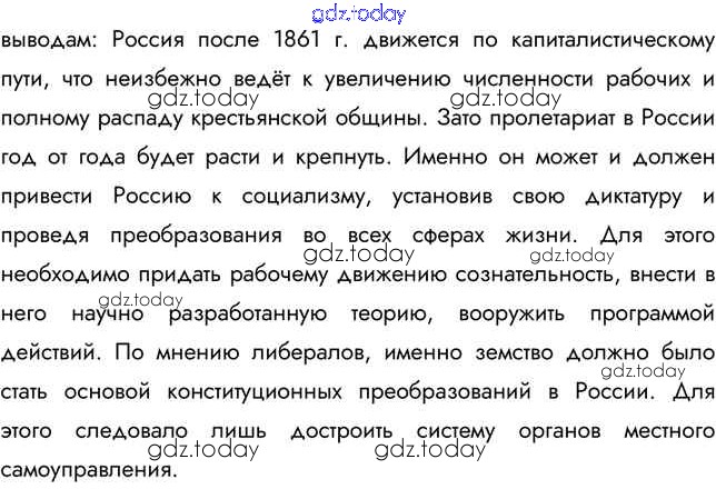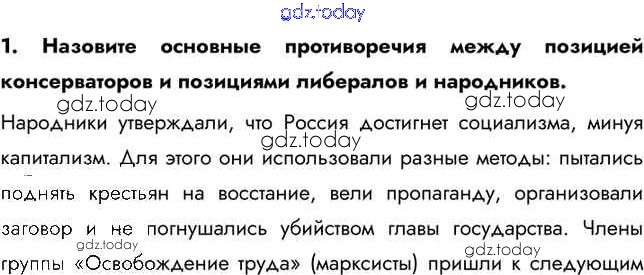 На страницах сайта gdz.today вы найдете учебный и вспомогательный материал, направленный на улучшения знаний школьной программы. ГДЗ - онлайн мир знаний Думаем, сравниваем, размышляем § 24. Общественное движение в 1880-х - первой половине 1890-х гг. 1 Учебнику по Истории России для 9 класса Арсентьев, Данилов  Просвещение  2016