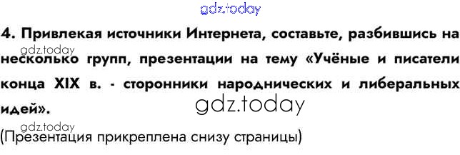 На страницах сайта gdz.today вы найдете учебный и вспомогательный материал, направленный на улучшения знаний школьной программы. ГДЗ - онлайн мир знаний Думаем, сравниваем, размышляем § 24. Общественное движение в 1880-х - первой половине 1890-х гг. 4 Учебнику по Истории России для 9 класса Арсентьев, Данилов  Просвещение  2016