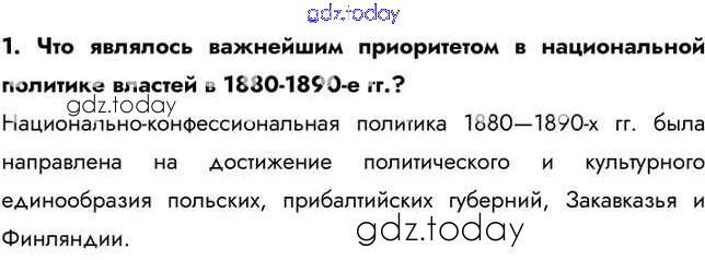 На страницах сайта gdz.today вы найдете учебный и вспомогательный материал, направленный на улучшения знаний школьной программы. ГДЗ - онлайн мир знаний Вопросы и задания Национальная и религиозная политика Александра III 1 Учебнику по Истории России для 9 класса Арсентьев, Данилов  Просвещение  2016