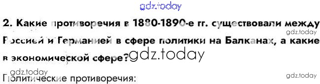 На страницах сайта gdz.today вы найдете учебный и вспомогательный материал, направленный на улучшения знаний школьной программы. ГДЗ - онлайн мир знаний Вопросы и задания § 25. Внешняя политика Александра III 2 Учебнику по Истории России для 9 класса Арсентьев, Данилов  Просвещение  2016