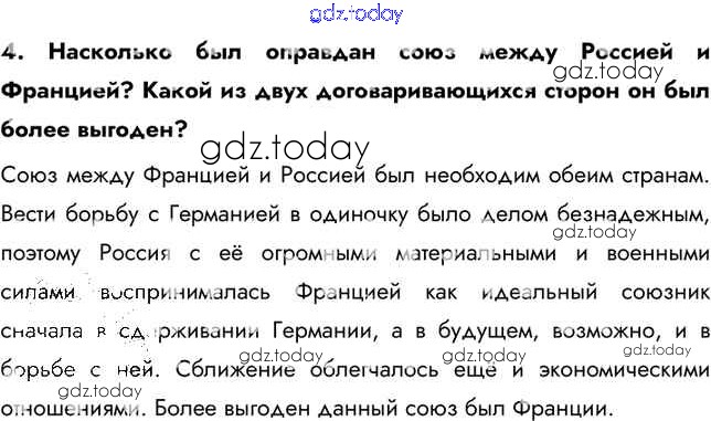 На страницах сайта gdz.today вы найдете учебный и вспомогательный материал, направленный на улучшения знаний школьной программы. ГДЗ - онлайн мир знаний Думаем, сравниваем, размышляем § 25. Внешняя политика Александра III 4 Учебнику по Истории России для 9 класса Арсентьев, Данилов  Просвещение  2016
