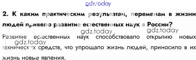 На страницах сайта gdz.today вы найдете учебный и вспомогательный материал, направленный на улучшения знаний школьной программы. ГДЗ - онлайн мир знаний Вопросы и задания Культурное пространство империи во второй половине XIX в.: достижение российской науки и образования 2 Учебнику по Истории России для 9 класса Арсентьев, Данилов  Просвещение  2016