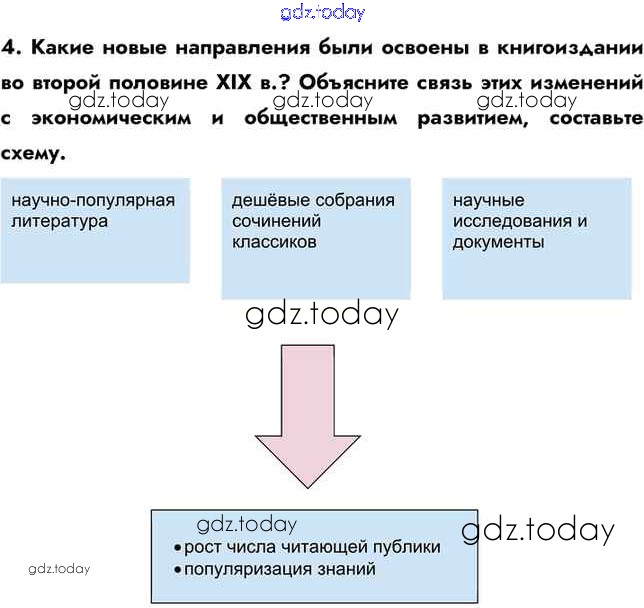 На страницах сайта gdz.today вы найдете учебный и вспомогательный материал, направленный на улучшения знаний школьной программы. ГДЗ - онлайн мир знаний Вопросы и задания Культурное пространство империи во второй половине XIX в.: достижение российской науки и образования 4 Учебнику по Истории России для 9 класса Арсентьев, Данилов  Просвещение  2016